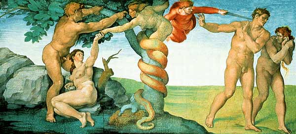 " Now the serpent was more subtle than any beast of the field which the LORD God had made. And he said unto the woman, Yea, hath God said, Ye shall not eat of every tree of the garden? And the woman said unto the serpent, We may eat of the fruit of the trees of the garden: But of the fruit of the tree which is in the midst of the garden, God hath said, Ye shall not eat of it, neither shall ye touch it, lest ye die. And the serpent said unto the woman, Ye shall not surely die: For God doth know that in the day ye eat thereof, then your eyes shall be opened, and ye shall be as gods, knowing good and evil. And when the woman saw that the tree was good for food, and that it was pleasant to the eyes, and a tree to be desired to make one wise, she took of the fruit thereof, and did eat, and gave also unto her husband with her; and he did eat."(5) This story attributes the origin of evil to a serpent. "The serpent of the garden of Eden is sense consciousness. It may also be called desire, and sensation, or the activity of life in an external expression, apart from the source of life."(6) Thus when man/woman entered the physical body they were subject to the consciousness produced by the senses. This consciousness caused humanity to fall asleep to their divinity. This consciousness has been associated with lustful expressions of life. All creation is subject to the law of cause and effect. Every cause has its effect, and every effect has its cause. It is humanities own actions which bind them to or free them from the wheel of karma. Jesus stated this principle when he said, "Verily, verily, I say unto you, Whosoever committeth sin is the servant of sin."(7) Because of this law ancient mystics have taught that evil is nothing more than good misunderstood. Evil is the word live spelled backwards. There is only one power in creation and that is God. Jesus expressed this fact when he said, "Every kingdom divided against itself is brought to desolation; and every city or house divided against itself shall not stand:"(8) Thus creation is not a divided house, but one house with one power.